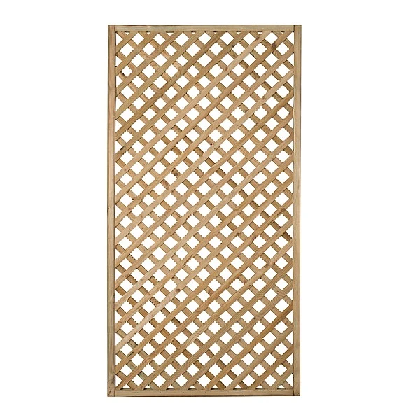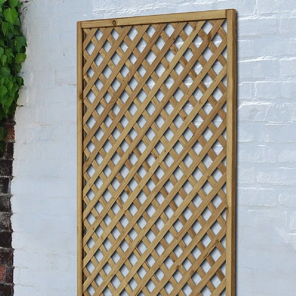 Flat diamond lattice, fixed into to rebated frame. Manufactured from pressure treated. FSC certified timber.